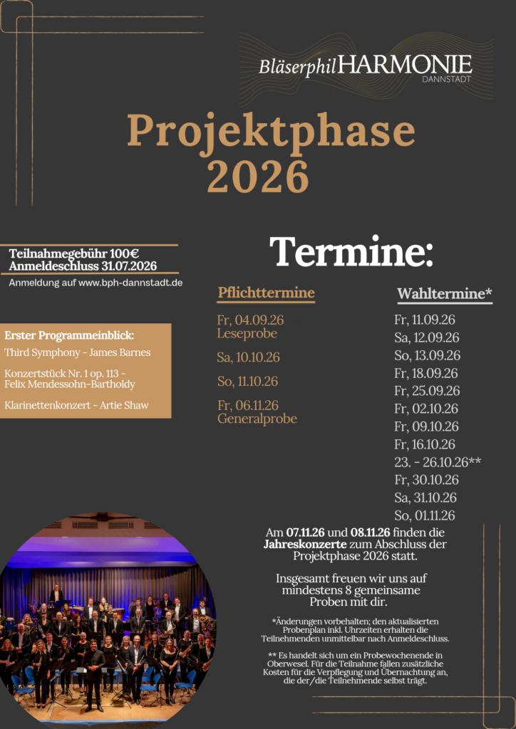 Der einzigartige Klangkörper, außergewöhnliche Projekte und auch das besonders harmonische Miteinander der Musiker*innen führen dazu, dass die BläserphilHarmonie Dannstadt für Mitspieler*innen aus der gesamten Umgebung eine attraktive Anlaufstelle ist, um sich musikalisch auszuleben.